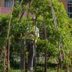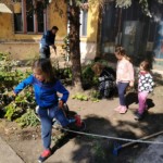 Rendezettebb lett az előkertünk. Beleértve az ESMT helyszínét is, ahol Orsi néni volt az úr ma is. A tornásai megkezdett kis kuckóját még lakályosabbá tette a sok lehulló faágból. Lesz hol csúszni-mászni.